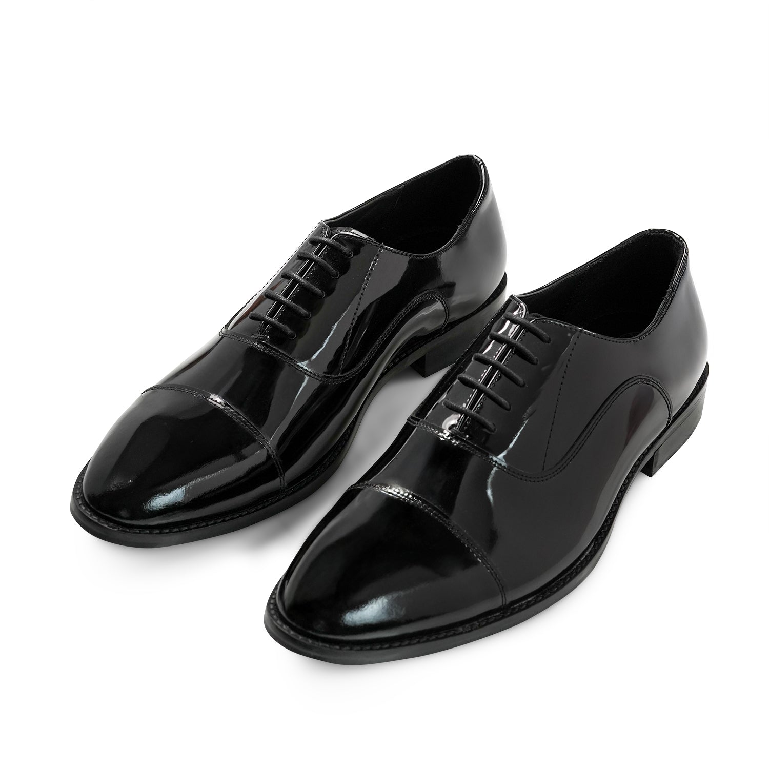 Black Patent Oxford: All time classic piece made for forever style. Made from finest leather with a rich black patent finish, it brings unmatched shine and sophistication to any formal look. Each pair is handmade by experienced craftsmen using the best materials for lasting comfort and durability. The sleek design fits perfectly with suits and party wear, adding a sharp, polished touch. The pair feels even more attractive when the tradition gets align with modern finish. Additionally, extra padded cushions and a sturdy lightweight sole, it’s built for long hours without losing style. You don't want to miss this one for your precious events.