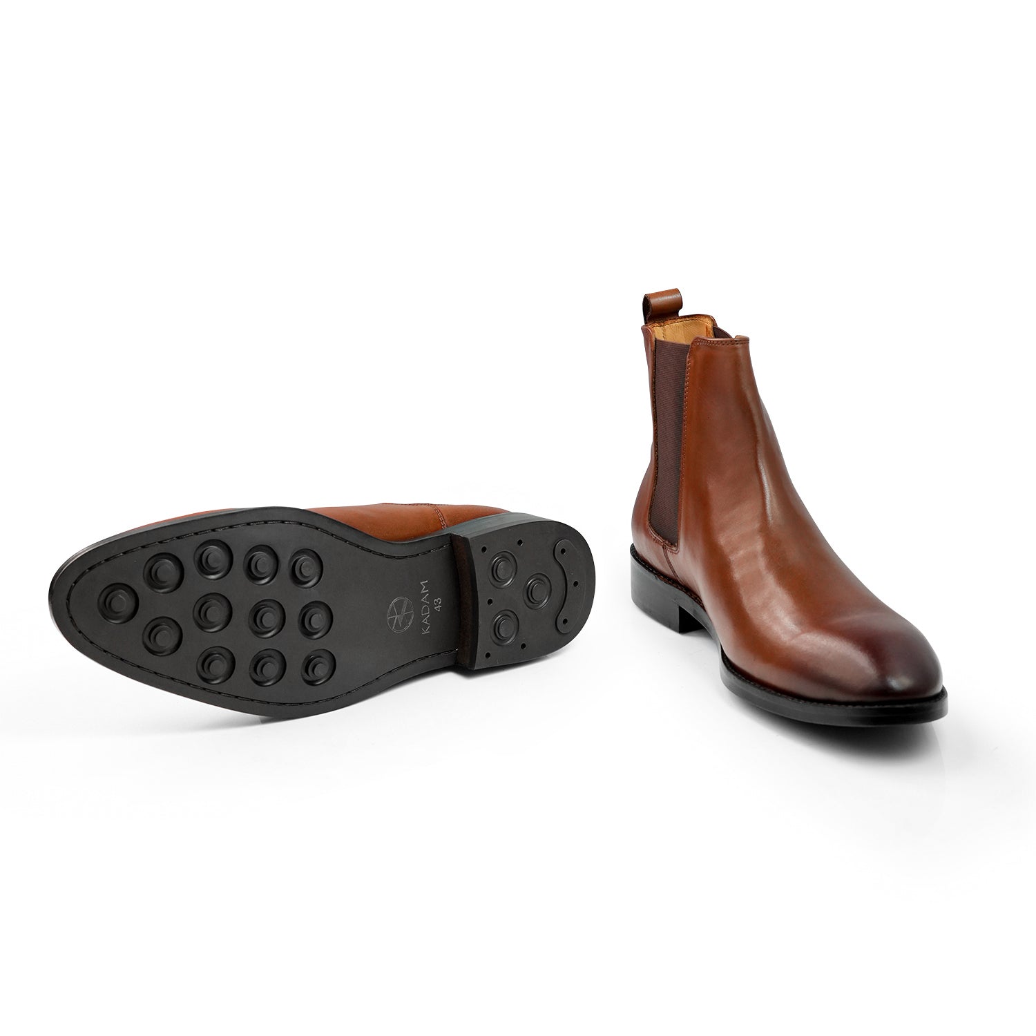 Tan Chelsea Boots - Made from rich tan brown leather, the finest raw materials and detailed craftsmanship. The sturdy sole and extra padded cushion insole makes it even more softer. These Boots are all about everyday comfort and high-fashion style. The neat and clean design and easy slip-on fit make them perfect for both casual and formal wear. Once you wear them, You will see the difference. Whether it’s jeans or a suit, they add statement to your each step.